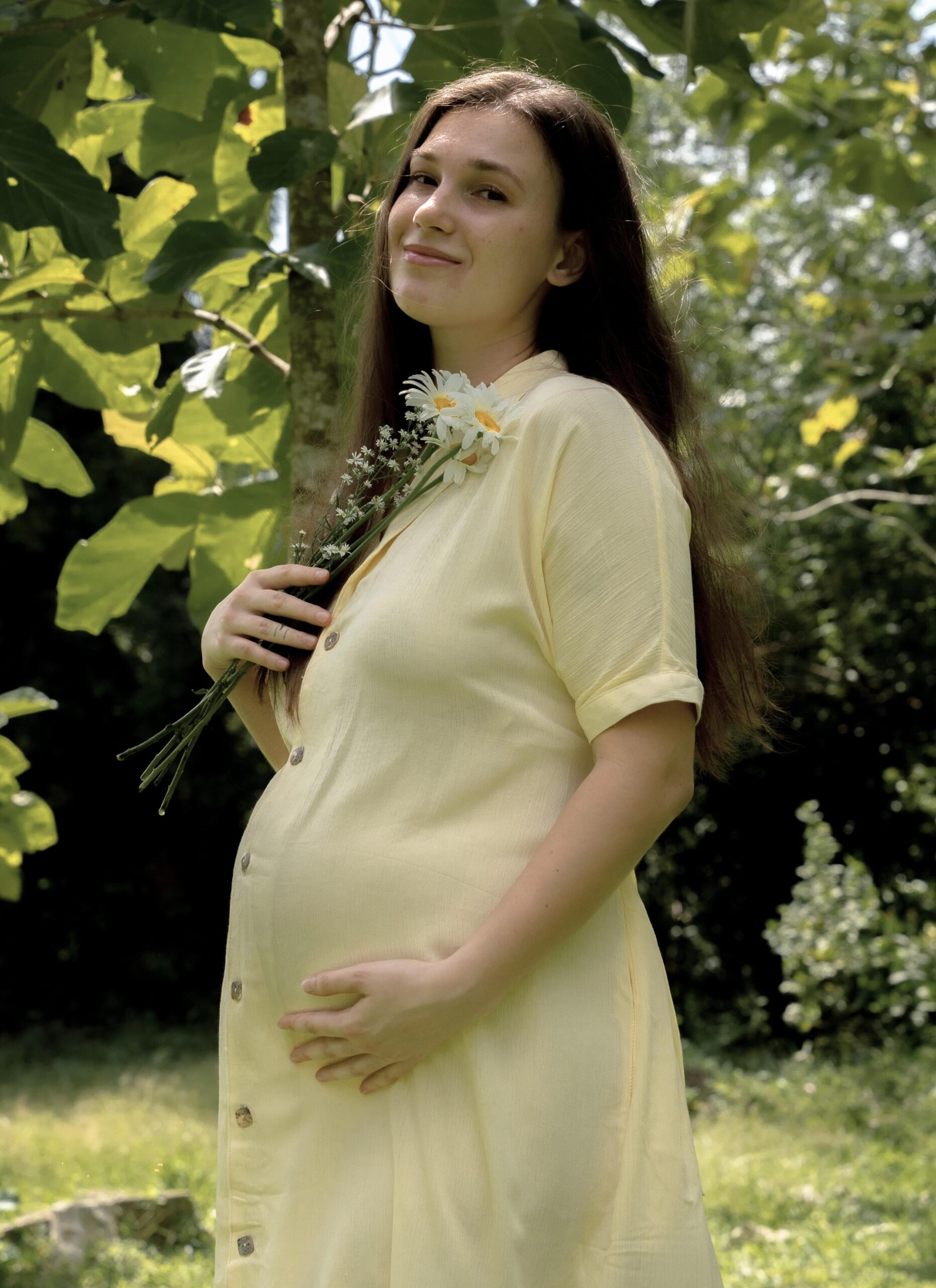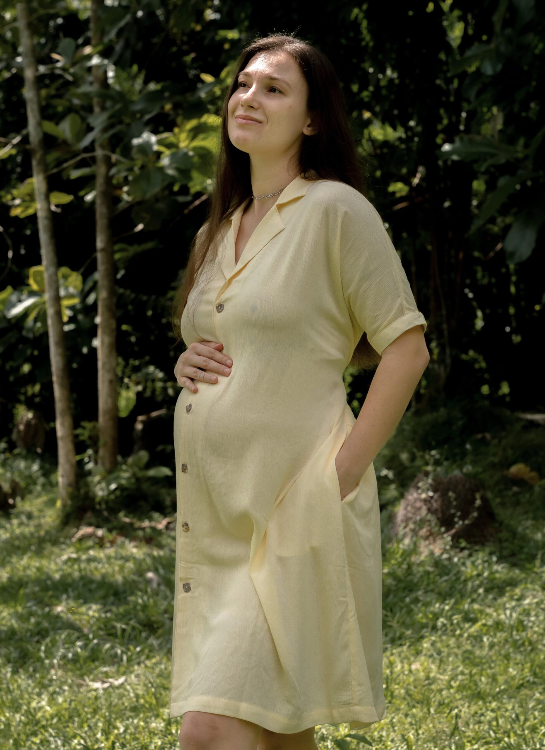 Relaxed Fit offering gentle drape and comfort through every stage of pregnancy.Bump-Friendly Design with a flattering maxi length and subtle stretch to grow with you.Versatile Wear perfect for casual outings, lounging, or dressing up with ease. Material Composition: 100% Cotton for breathability and comfort.Materials & Care: Wash below 40°C – Iron on Medium heat – Do not bleach – Wash with similar colors
